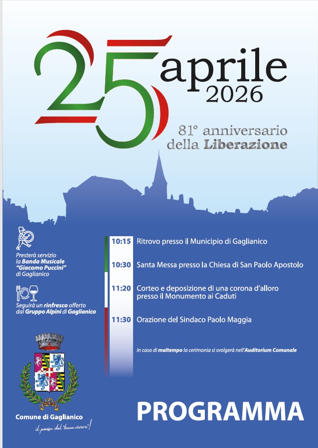 Seguirà un rinfresco offerto dal Gruppo Alpini di Gaglianico