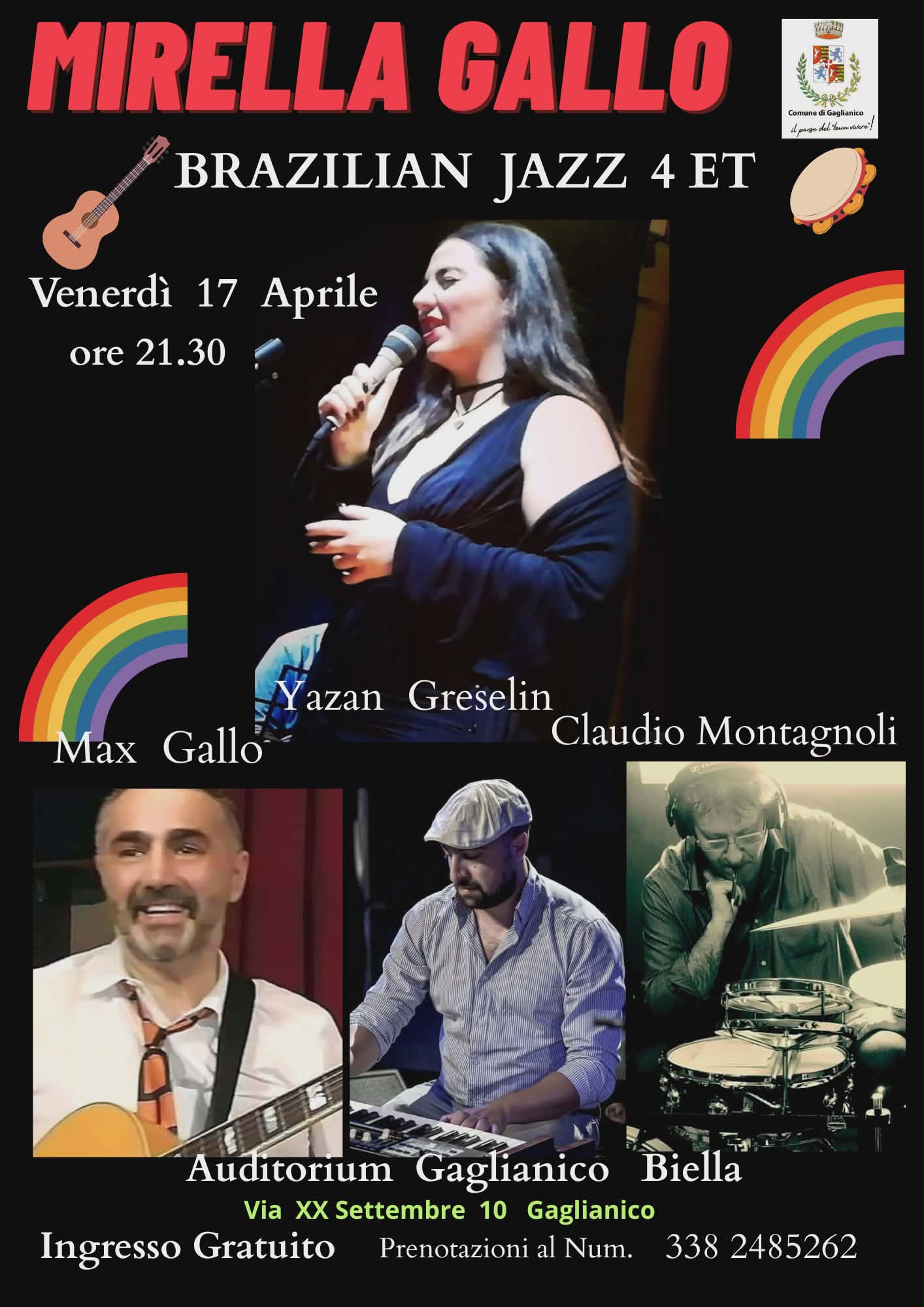 Venerdì 17 aprile ore 21:30 presso l'Auditorium Comunale di Gaglianico si terrà il concerto Brazilian Jazz 4 ET