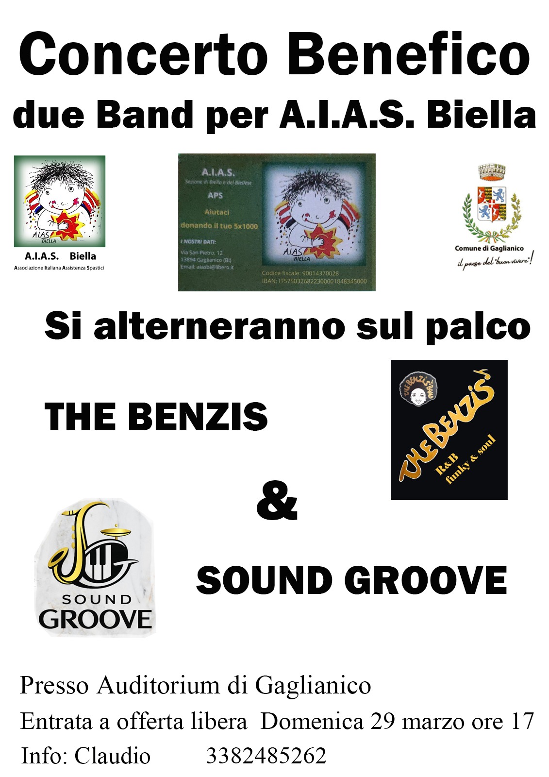 Domenica 29 marzo alle ore 17:00 presso l'Auditorium Comunale si terrà un concerto benefico con due Band per A.I.A.S. Biella.