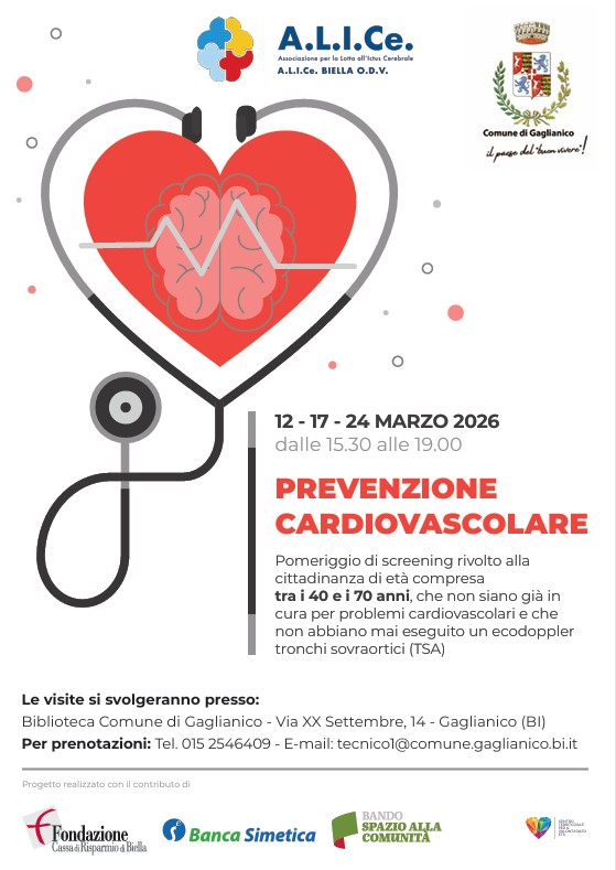 Pomeriggio di screening rivolto alla cittadinanza di età compresa tra i 40 e i 70 anni, che non siano già in cura per problemi cardiovascolari e che non abbiano mai eseguito un ecodoppler tronchi sovraortici (TSA).