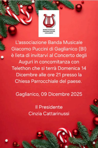 Domenica 14 dicembre: Ore 21:00 Concerto degli Auguri Chiesa Parrocchiale - Banda G. Puccini di Gaglianico LOCANDINA