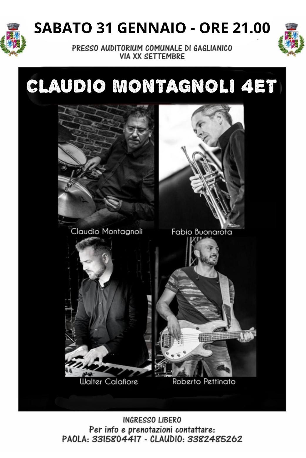 Sabato 31 gennaio, presso l’Auditorium di Gaglianico, si terrà un concerto del Montagnoli 4et, il quartetto composto da musicisti di fama nazionale: Claudio Montagnoli alla batteria, Fabio Buonarota alla tromba, Valter Calafiore al piano, Roberto Pettinato al contrabbasso. Si propone un repertorio prettamente soul funk.